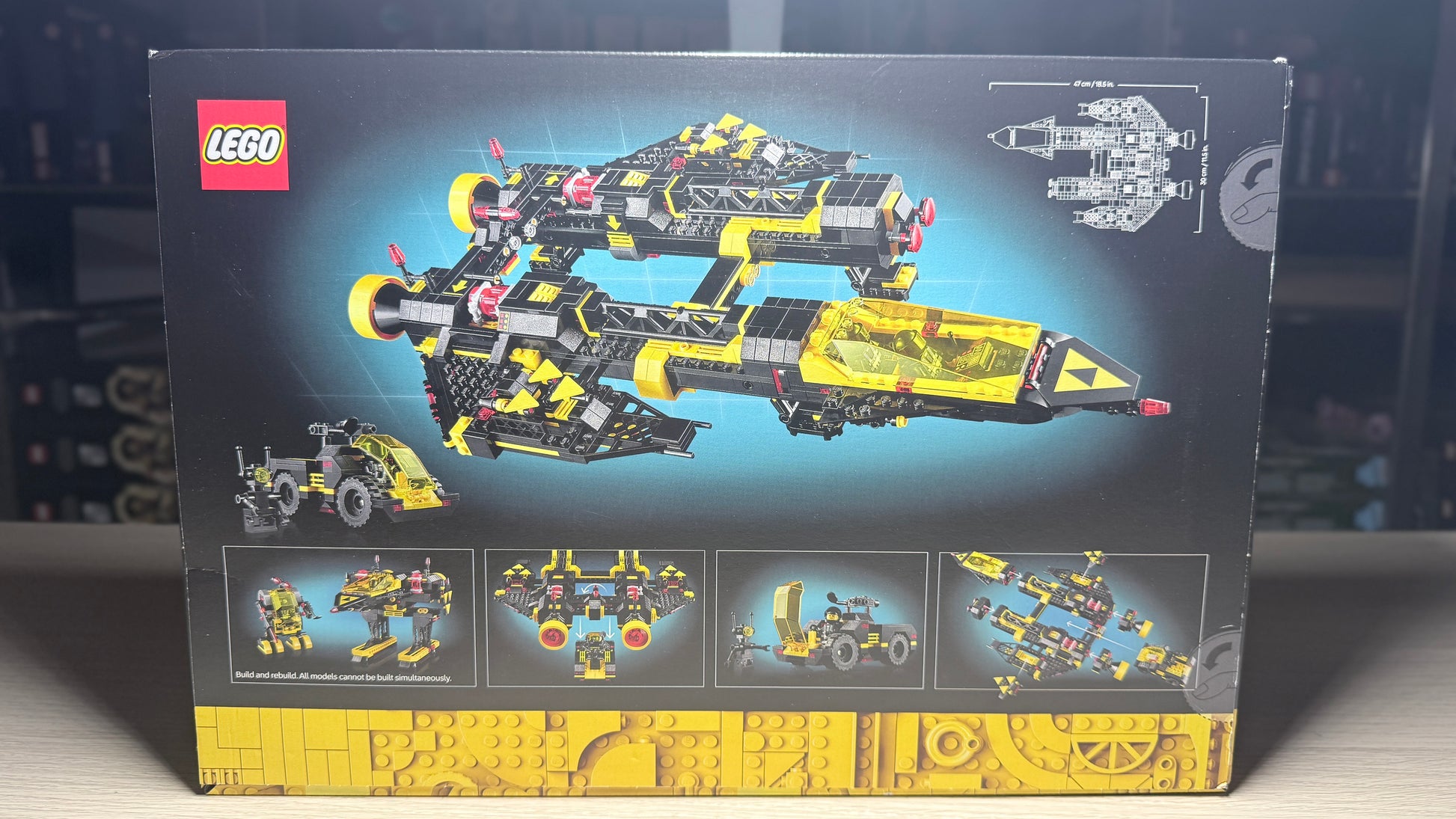 Pędzące światła przecinają czerń kosmosu, gdy smukły kadłub Renegade’a odłącza moduły niczym prawdziwy mistrz ucieczek! Z kokpitu spoglądają piloci Blacktron, gotowi do śmiałych manewrów, a w ładowni czeka łazik, by zbadać nieznane księżyce. Dwa zwinne ścigacze odpływają od skrzydeł jak żółto-czarne strzały, a cała konstrukcja aż prosi się o kolejne misje. To nostalgiczny powrót do złotej ery „Classic Space” – teraz większy, sprytniejszy i jeszcze bardziej satysfakcjonujący w budowaniu!