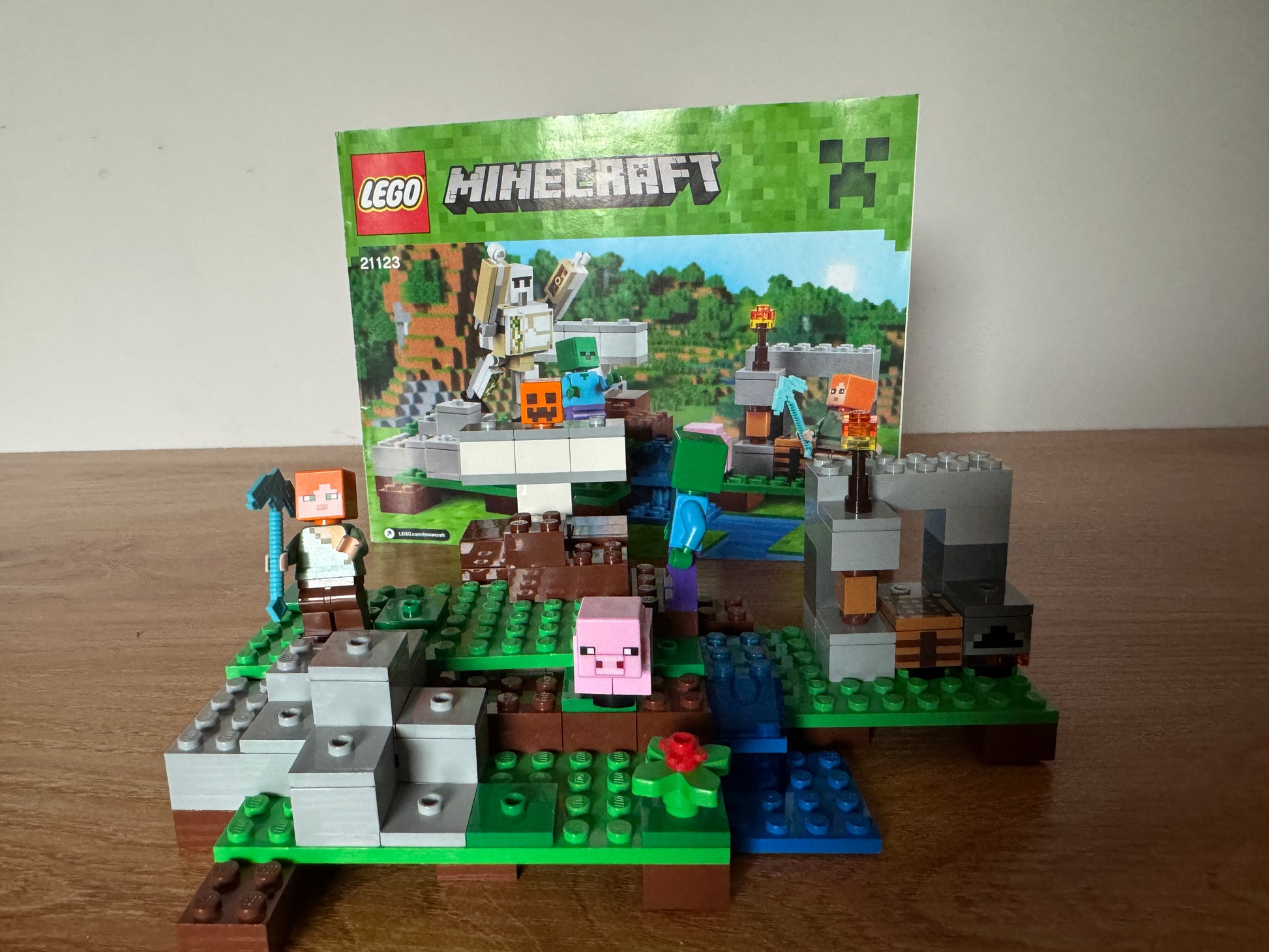 Przedmiotem oferty jest używany zestaw LEGO® 21123 The Iron Golem (Minecraft). Rocznik 2016, 208 elementów oraz 3 figurki: Alex, Zombie i prosiak — stan kompletny, z instrukcją, bez pudełka. Zestaw wiernie oddaje klimat gry: modułowa sekcja jaskini z charakterystycznymi blokami, możliwość zbudowania potężnego Żelaznego Golema oraz detale, które ożywiają scenki bez końca. Dzięki czytelnej instrukcji montaż jest przyjemny i płynny, a gotowy model świetnie łączy się z innymi zestawami Minecraft, pozwalając rozbudowywać świat klocków LEGO® według własnych zasad. To znakomity wybór dla fanów kreatywnego budowania, kolekcjonerów oraz wszystkich, którzy lubią szybkie, pomysłowe przebudowy i odtwarzanie ulubionych momentów z gry.