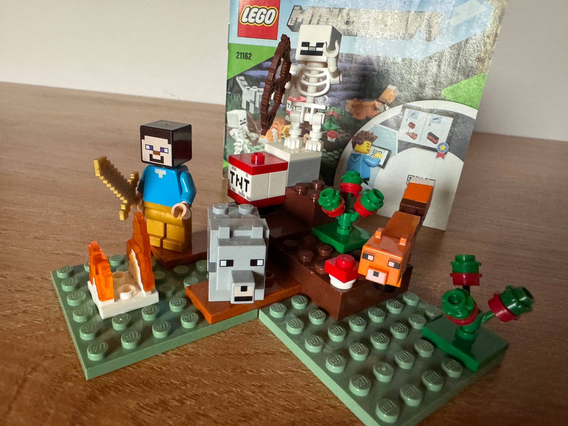 Oferowany jest używany zestaw LEGO® 21162 Domek w Tajdze (The Taiga Adventure) z serii Minecraft, wydany w roku 2020. Zestaw składa się z 74 elementów i zawiera 4 postacie: Alex, Wilka, Creepera i Lisa. Stan zestawu: kompletny, z instrukcją, bez pudełka. To kompaktowy, kolorowy model przedstawiający fragment tajgi – z małą chatką, drzewem, ogniskiem i skrzynią. Dzięki prostym modułom zestaw można łatwo przebudowywać, a ruchome elementy zachęcają do kreatywnego budowania i odtwarzania dynamicznych scen z gry Minecraft. To idealny wybór dla młodszych konstruktorów oraz miłośników serii, którzy lubią zestawy pełne klimatu i przygód w miniaturowej formie.