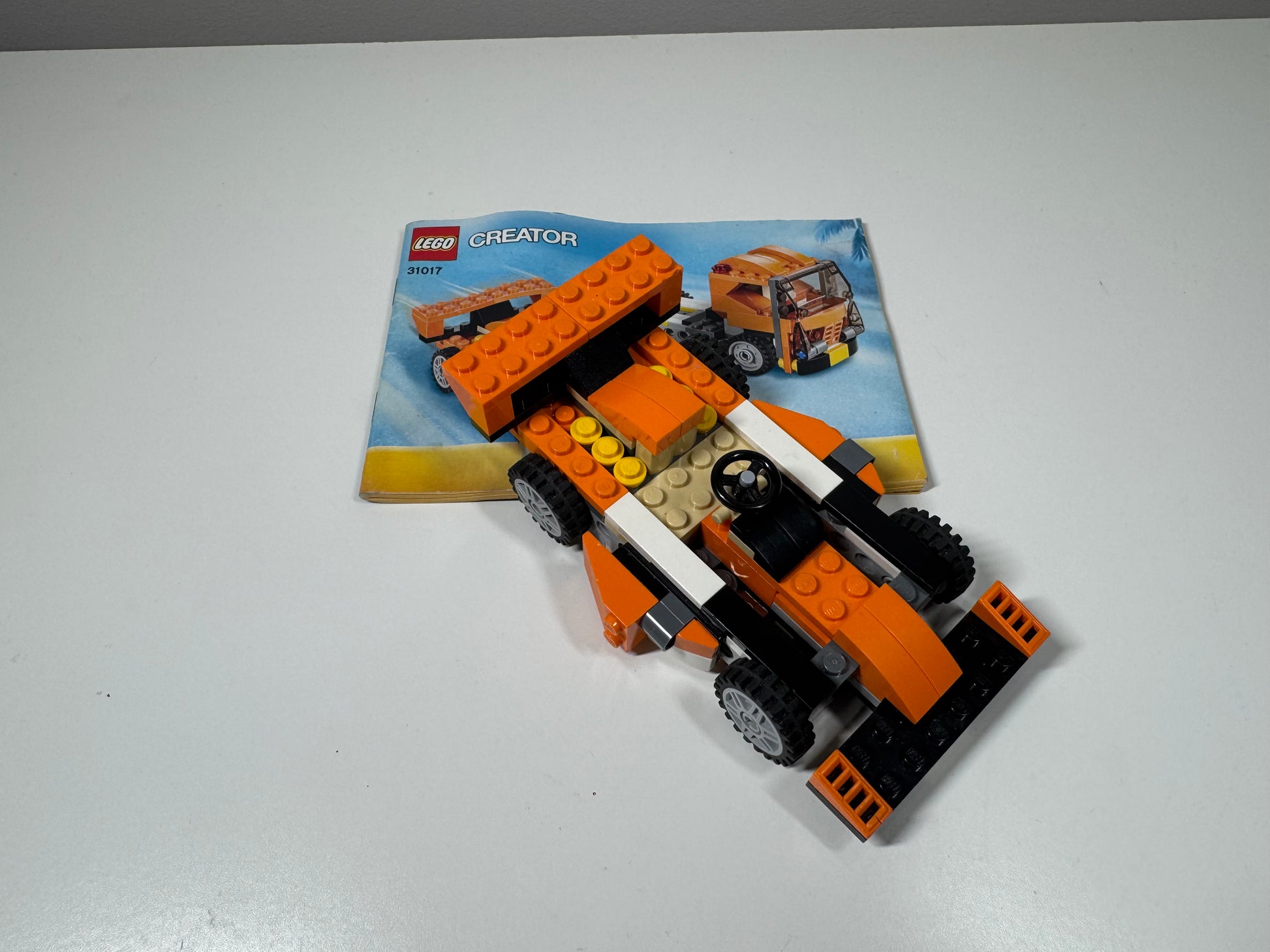 W części technicznej: zestaw LEGO® Creator 3w1 31017 „Sunset Speeder”. Łącznie 119 elementów, bez minifigurek – cała energia idzie tu w projektowanie pojazdów! Rocznik 2014. Oferowany zestaw jest używany, kompletny, z instrukcją, bez pudełka. To klasyczny Creator 3w1, więc z tych samych klocków zbudujesz trzy różne modele, ćwicząc sprytne techniki budowania i ucząc się, jak z garści elementów wyczarować zupełnie odmienne sylwetki. Dzięki niewielkiej liczbie części to świetny wybór na szybkie, satysfakcjonujące budowanie – idealny zarówno dla początkujących konstruktorów, jak i kolekcjonerów lubiących kompaktowe auta do ekspozycji. Zestaw oferuje przyjemne detale nadwozia i schludne wykończenia, które ładnie prezentują się na półce po zakończonej zabawie.